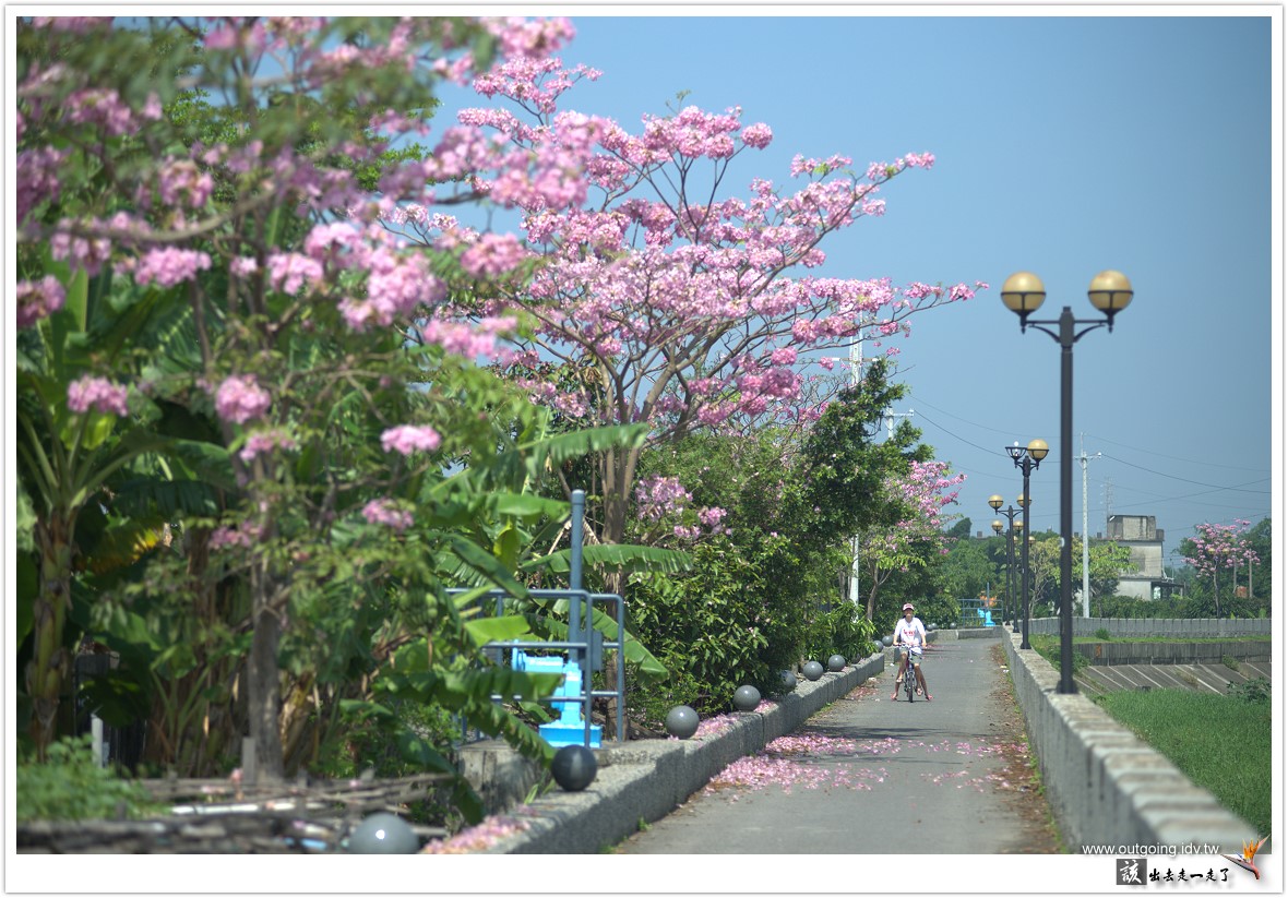 另外河堤邊的風鈴木也開花了,沿途好幾顆花樹都開得很不錯,
