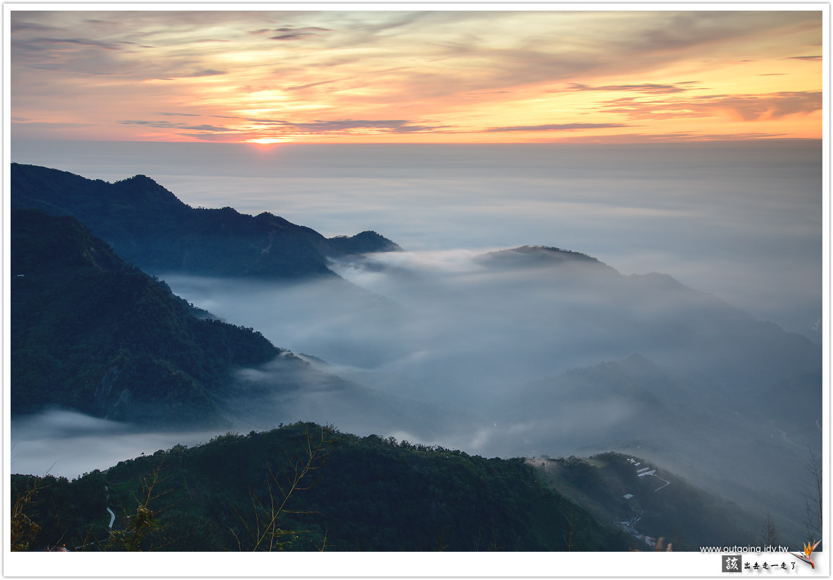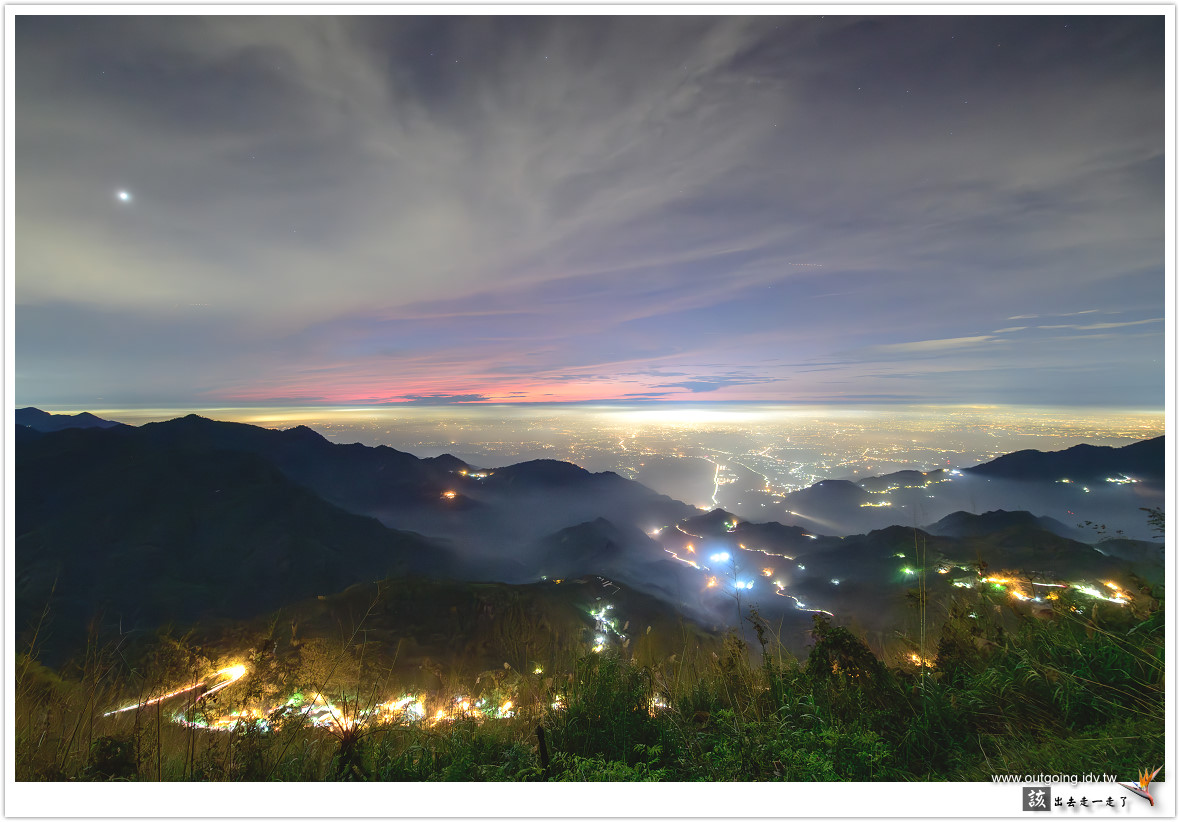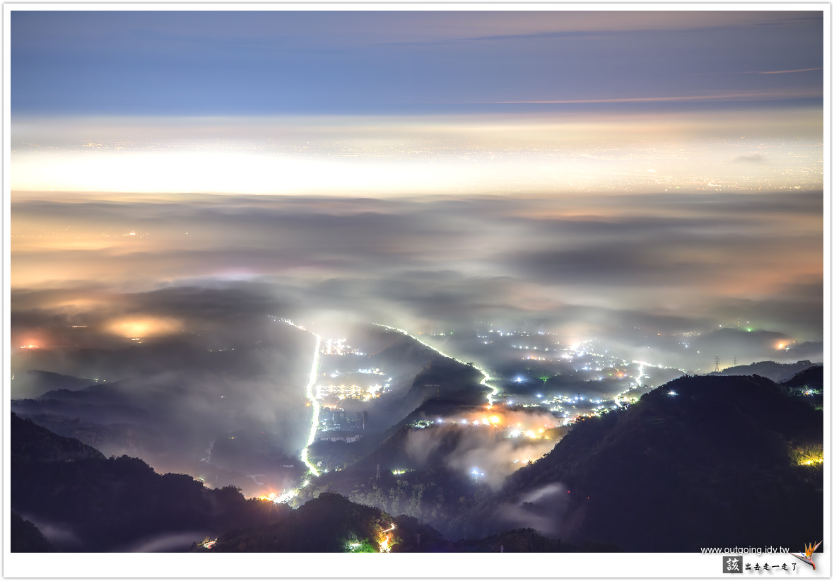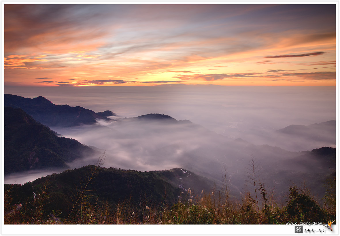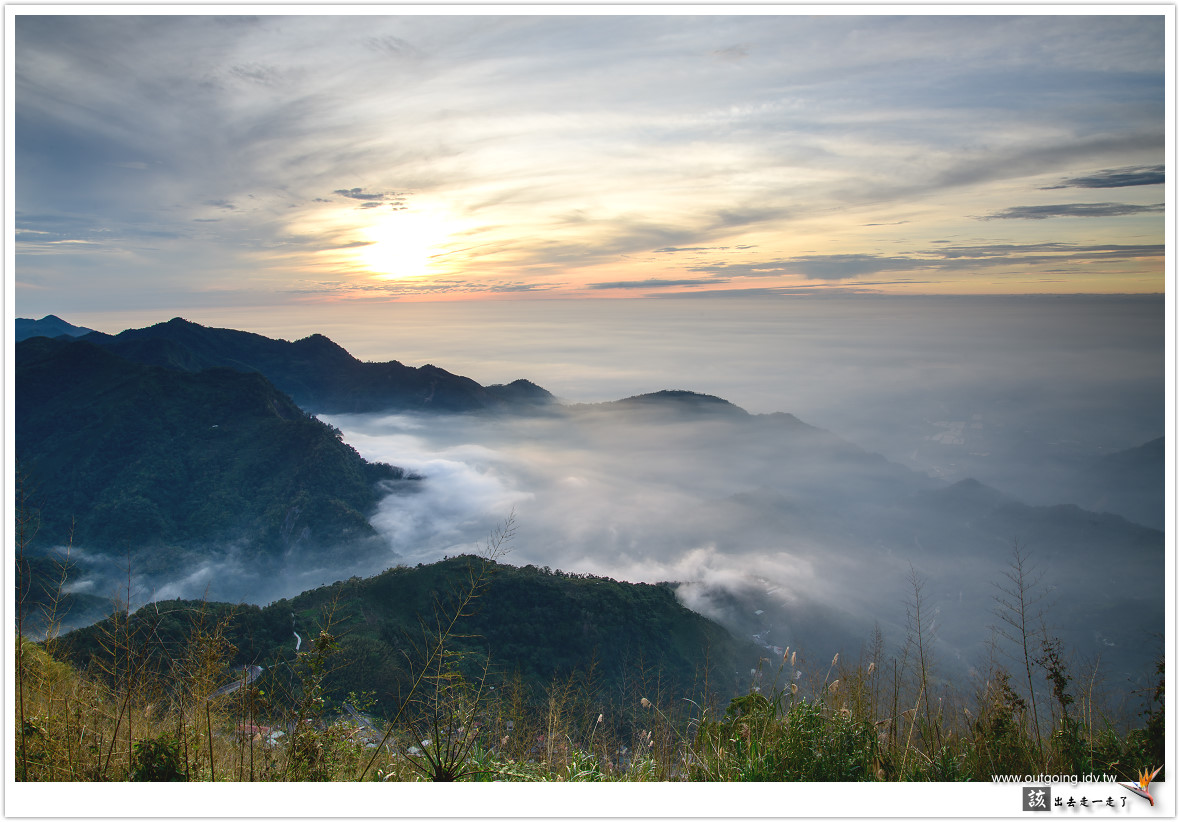 越晚雲海似乎越加厚實,期待可以流進前面山谷