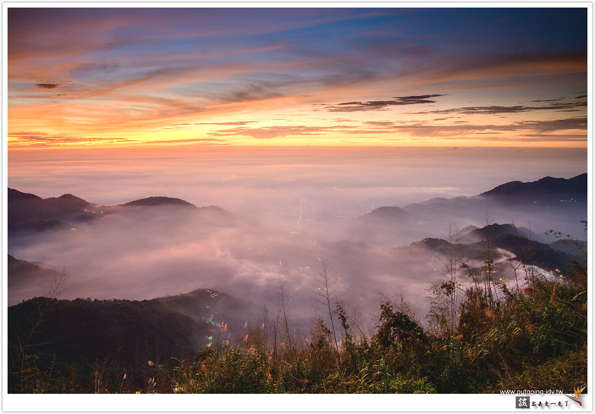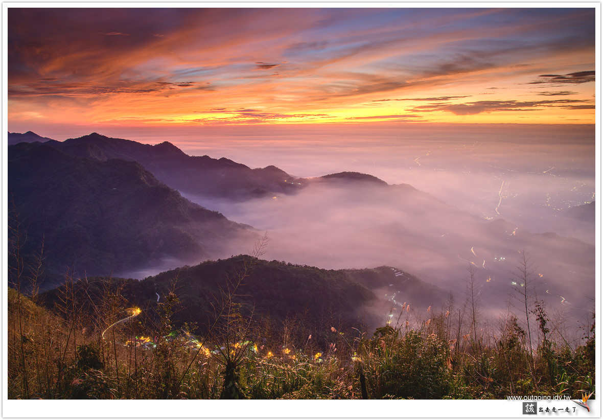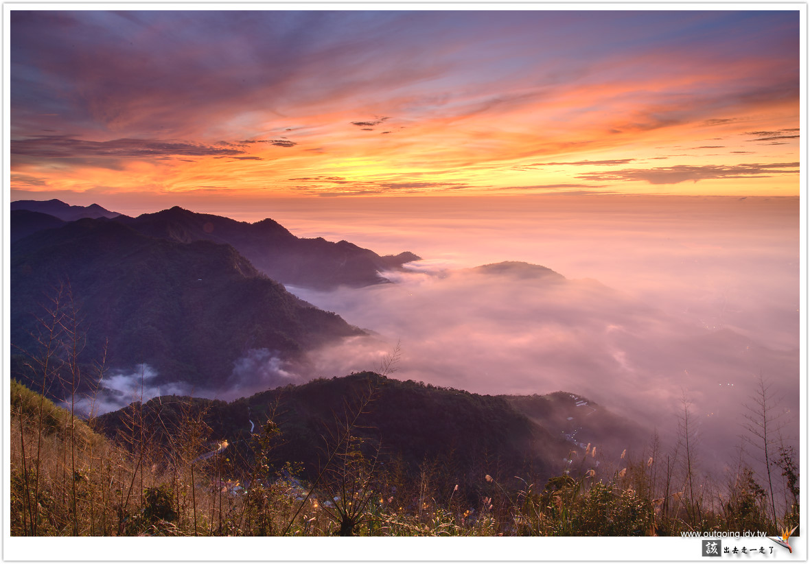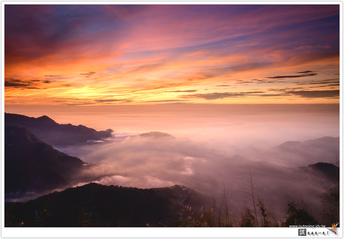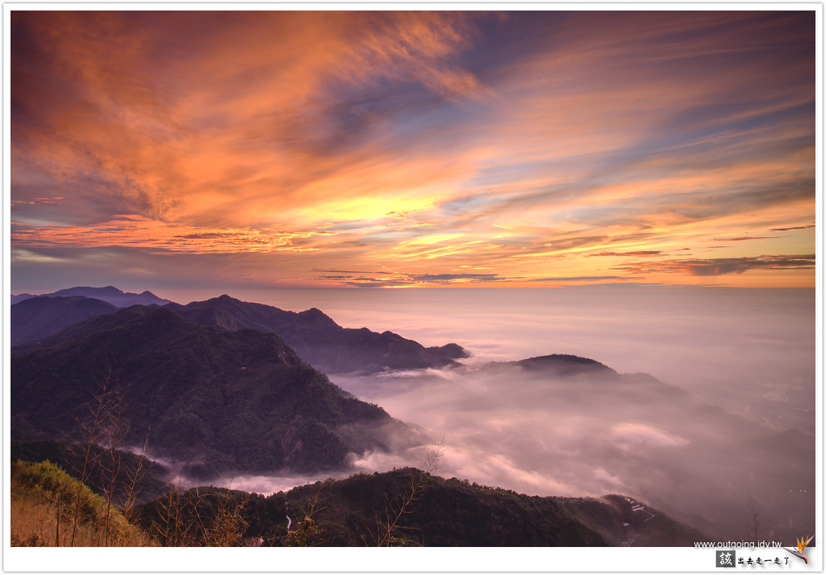 越晚雲海似乎越加厚實,期待可以流進前面山谷