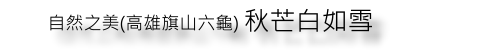 每年溪畔開始了白茫茫一片的時候,似乎就是宣告秋天的到來。高雄高屏溪、荖濃溪、旗山溪也都會在這時節出現整片芒花,這白茫茫如雪的景色也總吸引我到溪邊走走拍拍,不過高雄秋天的霧霾總是讓天空通透不佳,也許這樣的照片才能呈現秋天的蕭瑟吧! ...