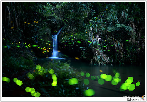 鹿谷鄉的一處瀑布,瀑布周遭入夜後滿滿的螢火蟲,半桶狀的瀑布谷地,只要有綠草覆蓋的地方,從山谷上方到水面都是閃爍的綠光,非常特別,與大家分享!